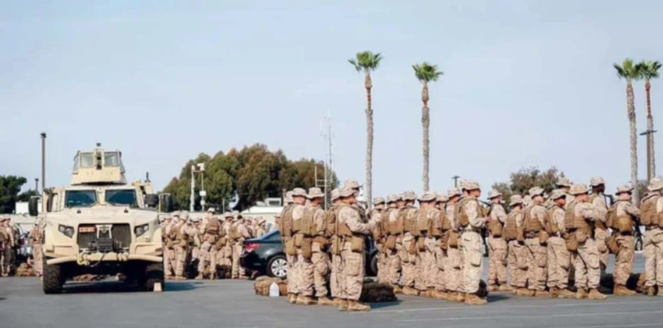 Por primera vez, tropas regulares del Departamento de Defensa de Estados Unidos han sido desplegadas en la frontera con México. Este contingente, compuesto por 500 elementos del Cuerpo de Marines, se encuentra en Imperial Beach, al sur de San Diego, California, cerca de la frontera con Tijuana.